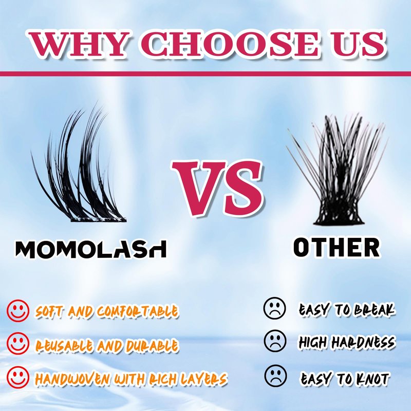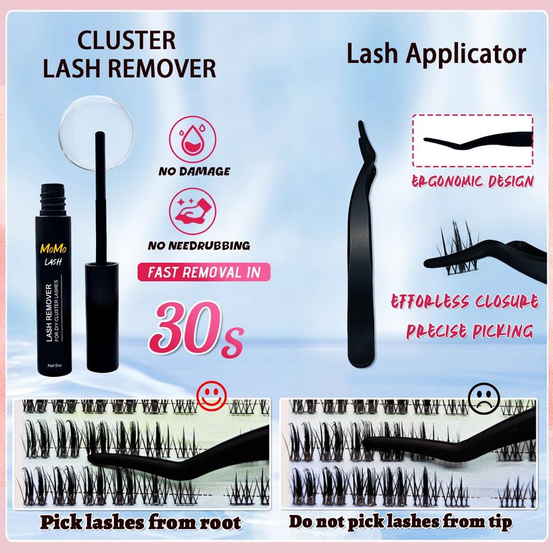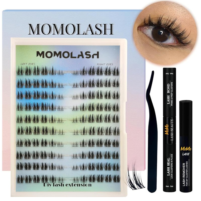 - 【WHAT YOU CAN HAVE】MomoLash fluffy eyelash extension kit offers 120pcs high-quality lash clusters 10-16MM, 10ml lash bond and seal, 5ml remover, eyelash tweezers, offering all you need to diy eyelash extension at home, allowing you to achieve professional results in the comfort of your own home.