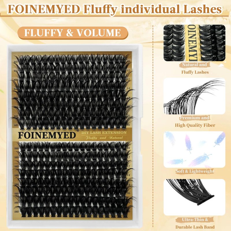 - 【Salon-Quality Cluster Lashes】: Say goodbye to salon visits and hello to DIY inspiration. FOINEMYED’s cluster lashes are of excellent quality and cruelty-free, giving you the same exquisite experience as a beauty salon. You may apply lash clusters and create stunning lash styles in your own space.