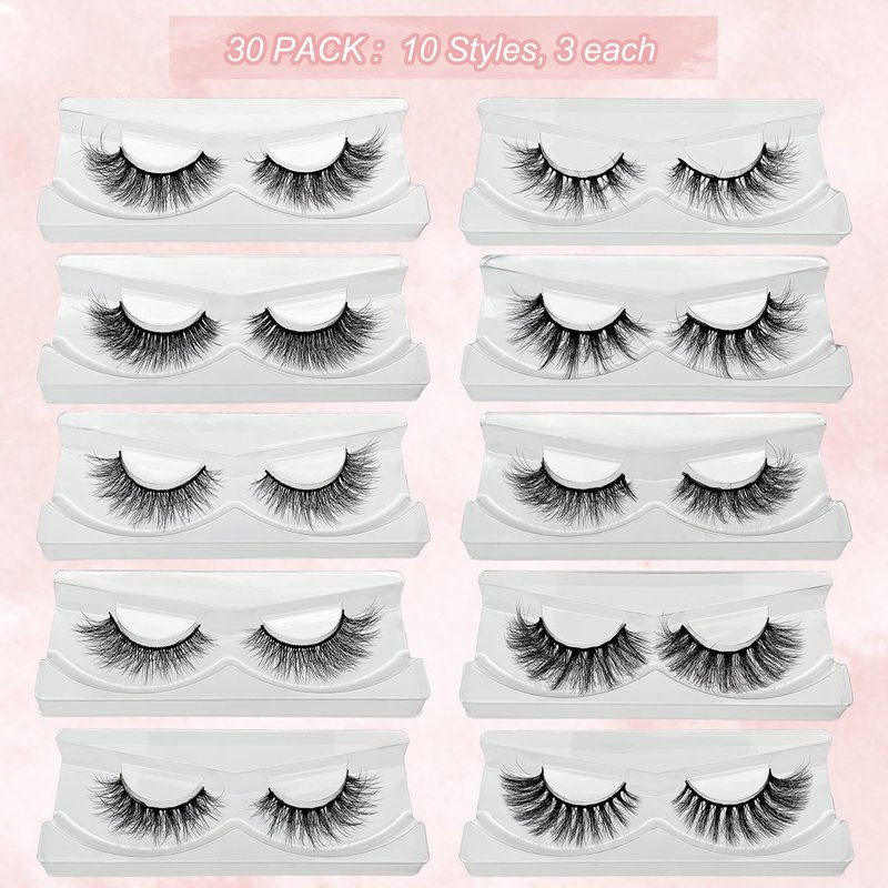 - 【30 Pairs Faux Mink Eyelashes】: Value for money eyelash pack,Dramatic eyelashes make you more attractive, You will be the brightest star in the crowd. Suitable for daily wear, party, festival, photo shoot