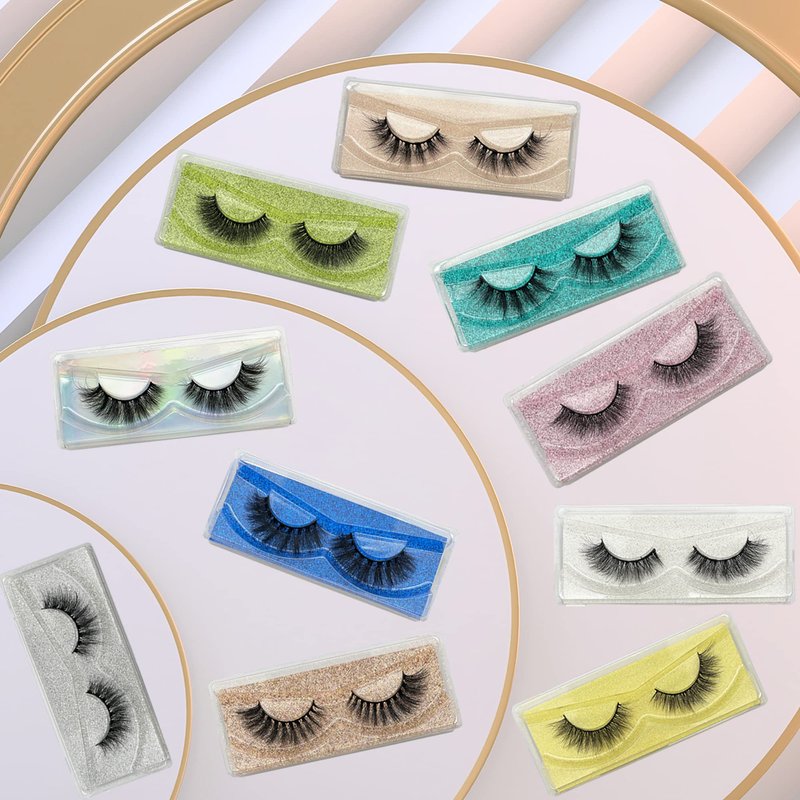 Fluffy Lashes 18mm False Eyelashes 30 Pairs 10 Styles Mixed Natural 9D Faux Mink Lashes Bulk Soft Reusable Fake Eyelashes Wholesale Lash with Glitter Portable Boxes