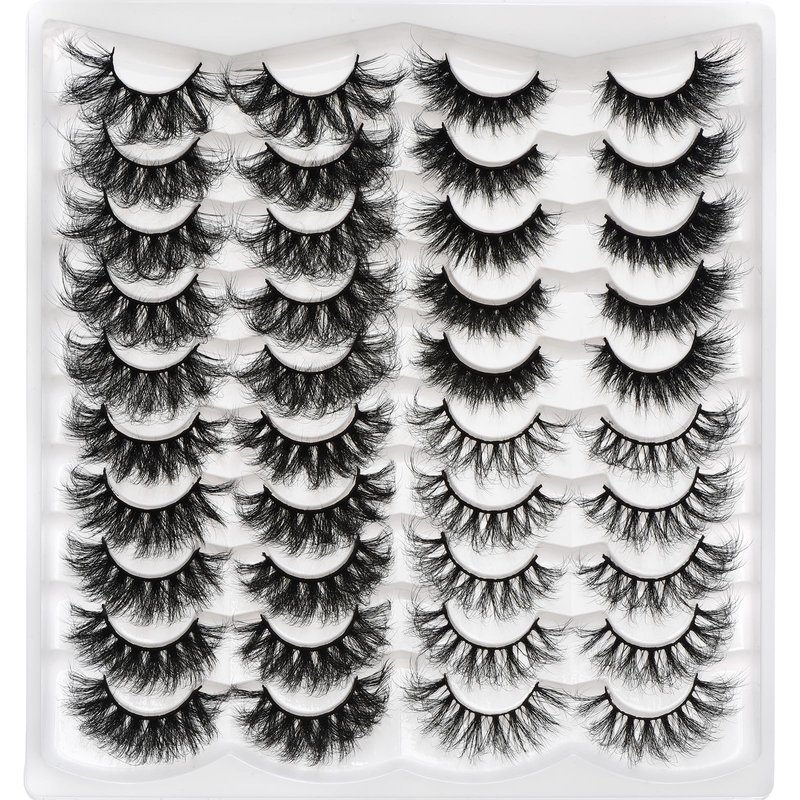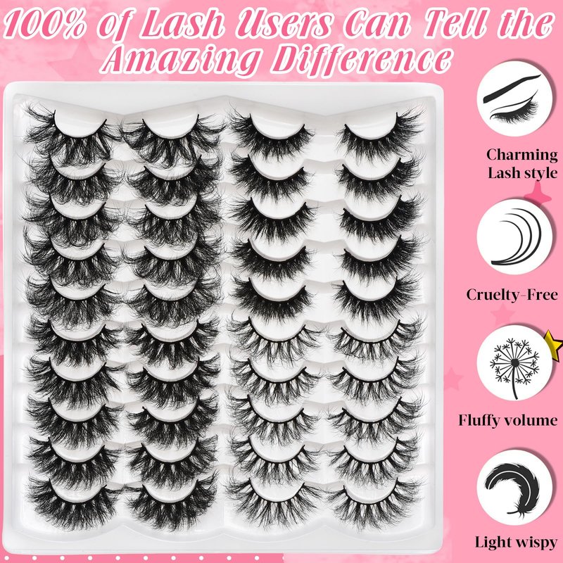 Fluffy Lashes 4 Styles 22MM-25MM 3D False Eyelashes 20 Pairs Full Wispy Lashes 25 MM Long Volume Curly Fake Eyelashes Reusable Dramatic Thick Faux Mink Lashes Multipack Wholesale Pack, by Yaiseiko