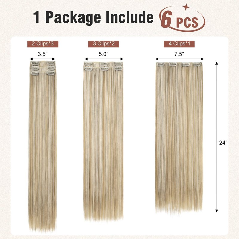 FLUFYMOOZ 6PC Clip in Hair Extensions 24" Straight Long Extensions for Women Synthetic Hairpiece (Blonde with Blonde Highlights)