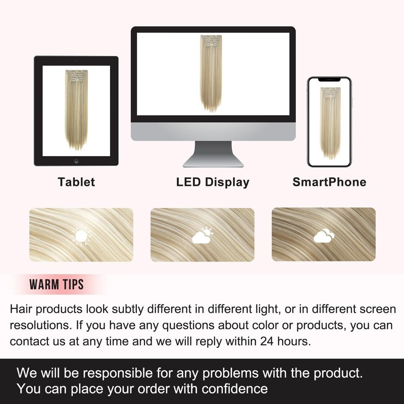 - 💖[Color Tips]: All our clip in hair extensions are photographed from the actual product; there may be slight deviations due to technology, display, light, and environment, so please refer to the actual product.