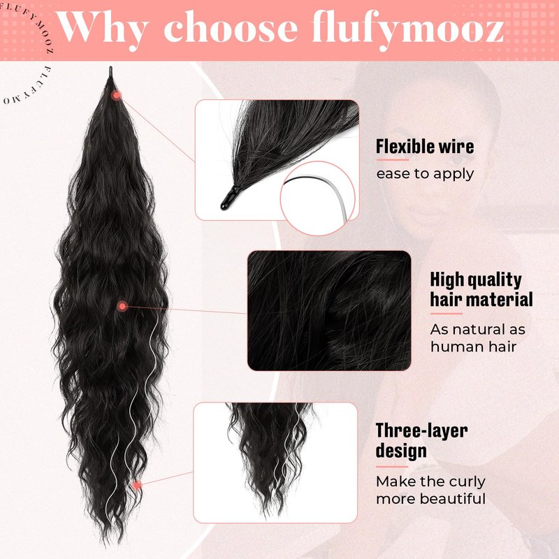 - π[A new way to wear]: The flexible and bendable wire, combined with the winding of the ponytail, can make it extremely comfortable to wear. There will be no foreign body feeling like a gripping clip or a hanging feeling like a drawstring. It is designed for comfortable wearing.