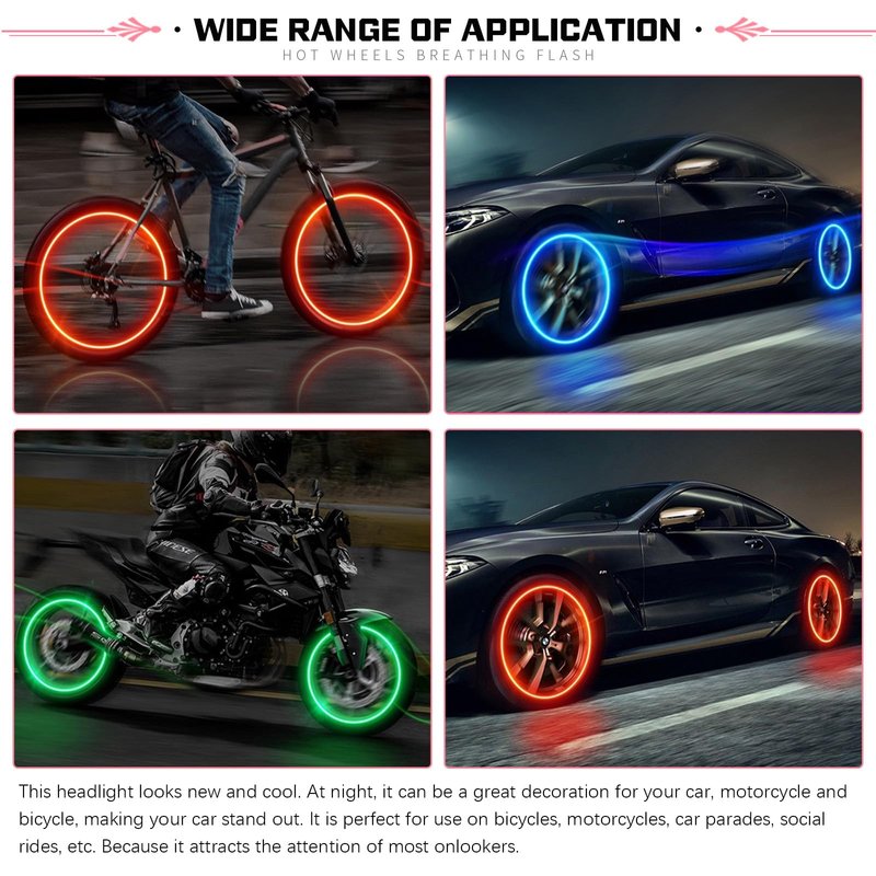 - Long-lasting Light: This tire valve light improves visibility when driving at night and serves as a safety warning, allowing passers-by and others to see your car from a long distance, ensuring riding safety.