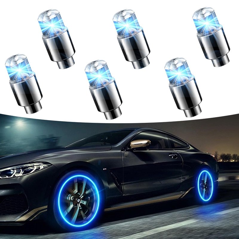 Fluher 6 PCS Car Tire Valve Light, Cool Modified Night Light Safety Shock Sensor Flash Light, Waterproof Tire Valve Stem LED Light Cap, Universal Wheel Decoration Accessory for Car Motorcycle (Blue)