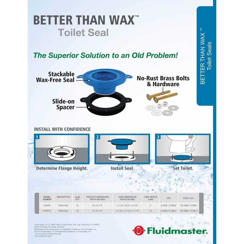 Fluidmaster 7530 Universal Better Than Wax Toilet Seal, Wax-Free Toilet Bowl Gasket Fits Any Drain