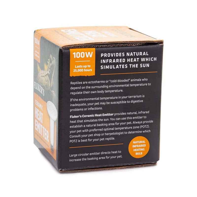 Fluker's Ceramic Heat Emitter, Natural Infrared Heating Bulb for Reptiles, 100 Watt , Black