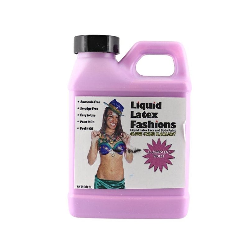 Fluorescent Violet 8 Oz - Liquid Latex Face and Body Paint, Black Light UV Reactive GLOW, Ammonia Free, Perfect for Halloween Costume, Cosplay, Concerts, Parties!