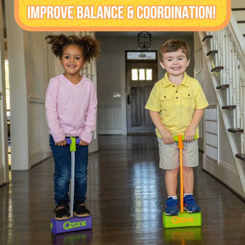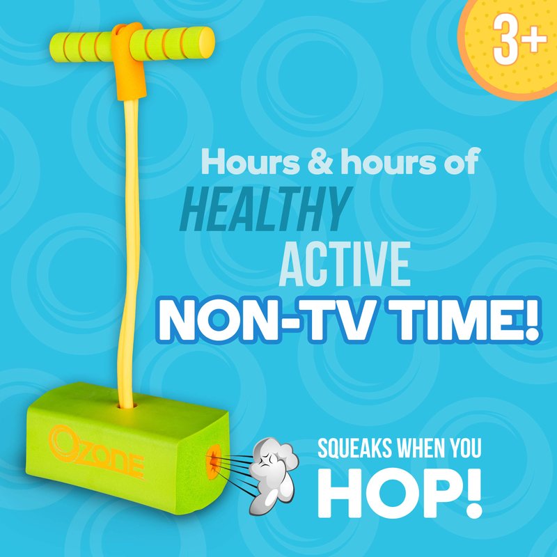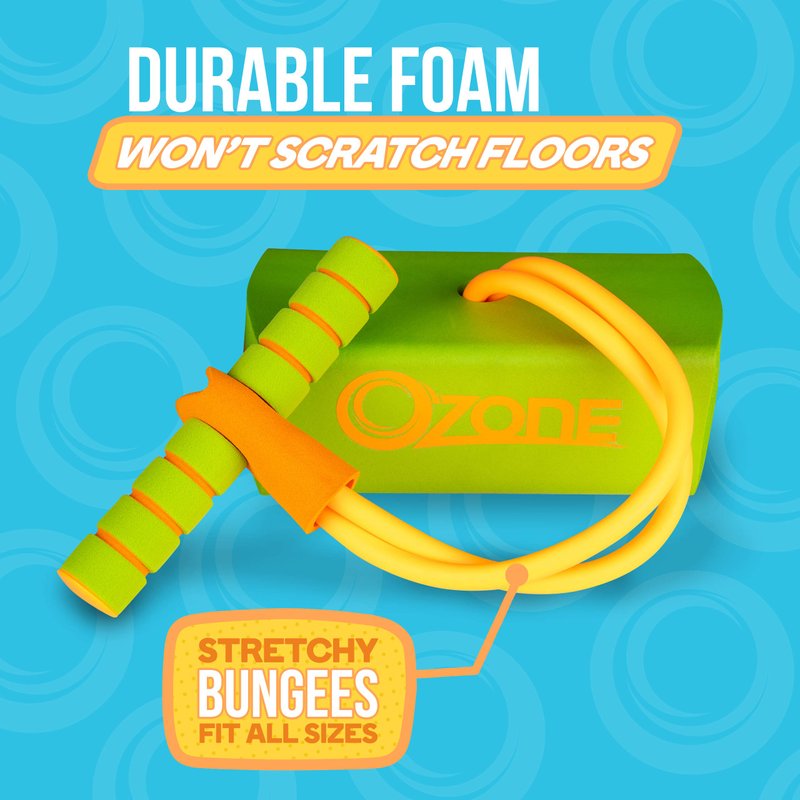 Introduce your child to the happy hoppy fun of a pogo stick with the Ozone My First Pogo Foam Hopper. This indoor/outdoor bouncy toy is for toddlers, boys and girls ages 3 and up, and helps little ones develop balance and coordination, and improve muscle tone, all while they enjoy hours of screen-free activity. The durable foam base includes a silly squeaker that squeaks with every bounce, and it won’t scuff or scratch floors. The pogo hopper supports weight up to 250 pounds (grown-up friendly!) and a soft, stretchy bungee connects the base to the easy-grip foam handles, giving your child a comfortable and safe pogo experience. The Ozone My First Foam Pogo Hopper comes in two bright, fun colors and makes a great gift idea for encouraging active, healthy playtime.