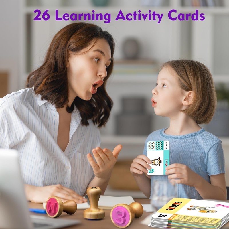 - EDUCATIONAL TOY WITH LEARNING ACTIVITY CARDS: Our comprehensive set of pull-out recognition cards and stamps are designed to reinforce ABC learning and are designed to reinforce letter recognition and basic arithmetic skills. These letter stamps are more than just educational toys; they are tools that foster creativity and personalized learning experiences. Whether used at home or in the classroom, they encourage hands-on exploration and imagination.