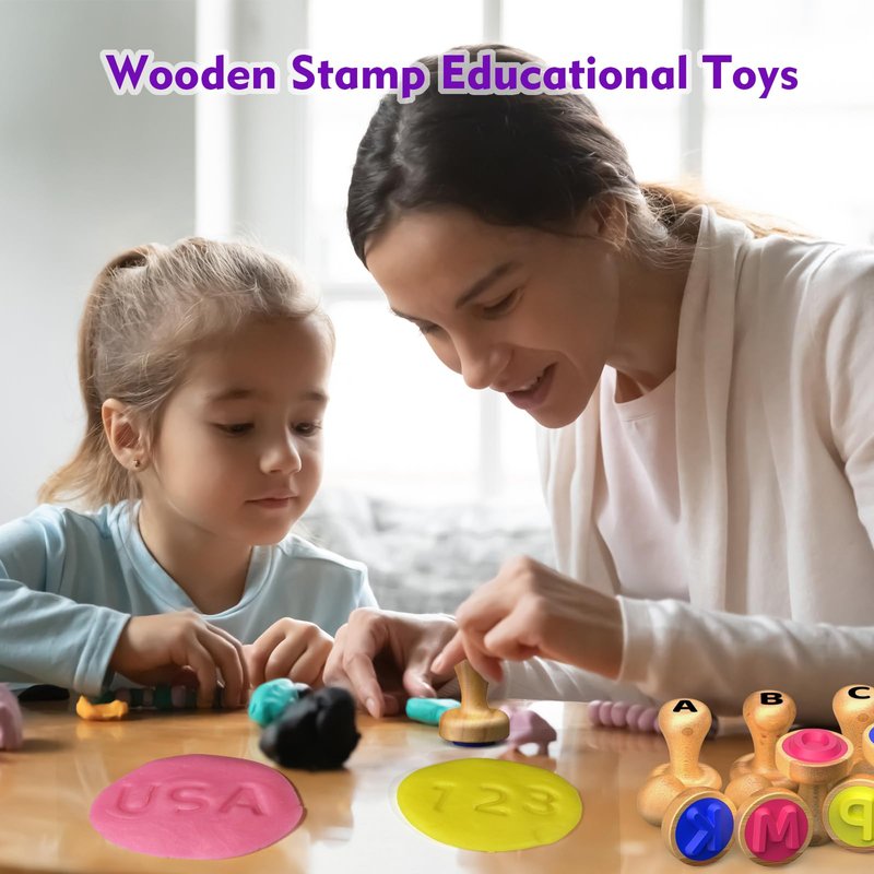 - WOODEN ALPHABET AND NUMBER STAMPS FOR KIDS: A must-have for every preschool classroom and a must-have for toddler art supplies, this stamp includes 26 letter stamps, 10 number stamps, 3 arithmetic symbol stamps and 26 activity cards. These fun stamps help kids learn ABC and elementary math in a fun and easy way.
