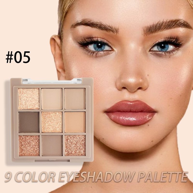 FLYEEO 9 Colors Matte Nude Pink Shimmer Gold Dark Brown Colorful Eyeshadow Palette Matte Shimmer Korean Natural Eye Shadow palettes Highly Pigmented Naturing-Looking Long Lasting (05#)