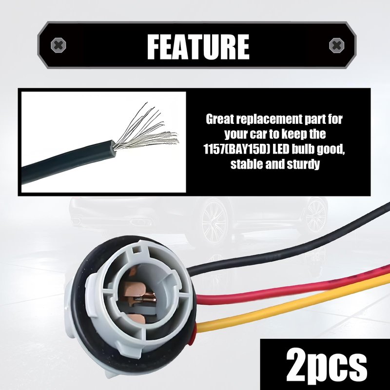 - Product Parameters: The type of LED light bulb socket is 1157. After purchase, you will also receive 2 x LED light bulb sockets, which are enough to meet the needs of vehicle light bulb fixation. The LED light bulb socket comes with a wiring harness for easy connection to the car's wiring control system.