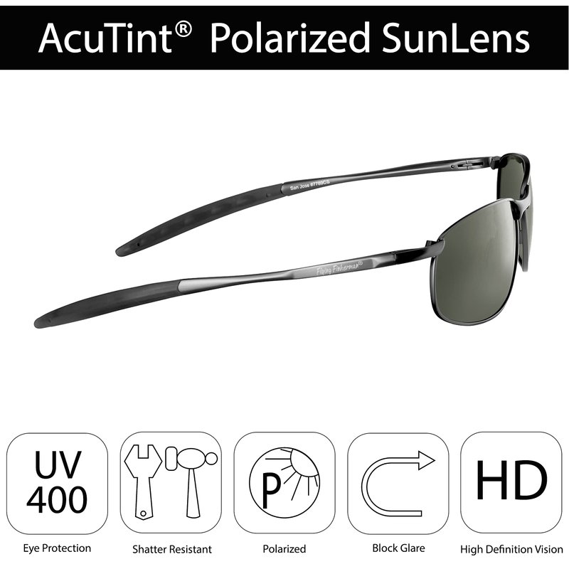 - POLARIZED SUNGLASSES FOR MEN & WOMEN. AcuTint Polarized Lens System blocks 100% of UVA and UVB rays, sharpens contrast and clarity, and eliminates glare, allowing you to see beneath the water’s surface. Glasses are hard coated for scratch resistance.