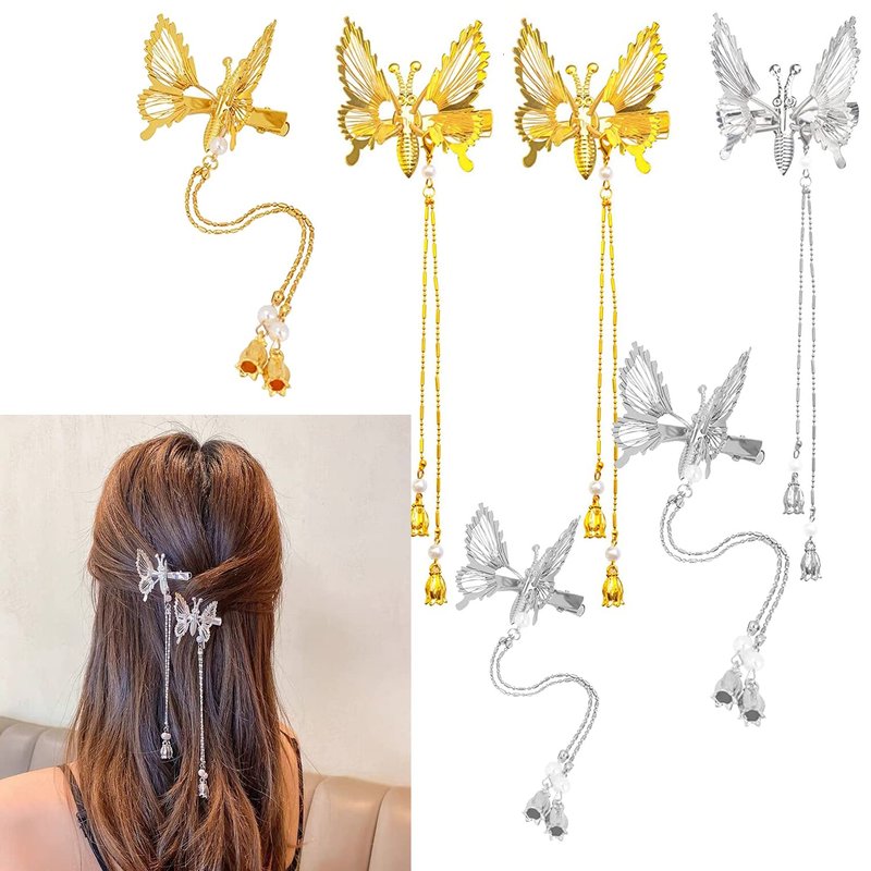 Flymind Moving Tassel Butterfly Hair Clips, Elegant Antique Side Hair Accessories with Moving Hairpins for Women Girls (Gold & Silver)