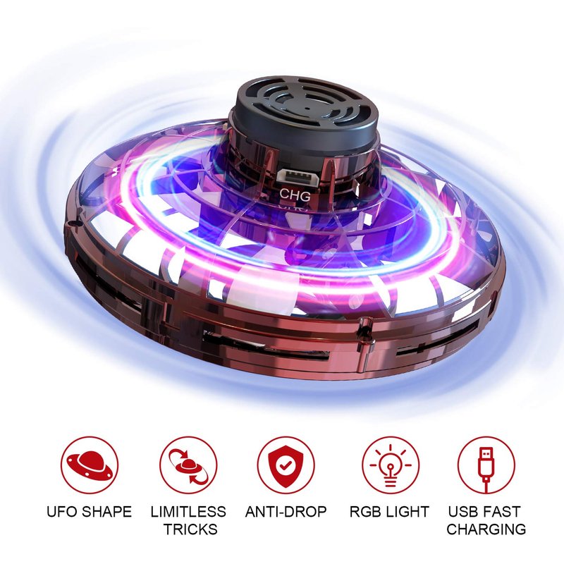 FLYNOVA Drone Toys,Hand Operated Mini UFO Spinner with LED Lights,360° Flip Flying Orb Ball,Indoor Small Toy Xmas Birthday Gifts for Kids & Adults,Cool Game for Boys Girls Outdoor Team Play