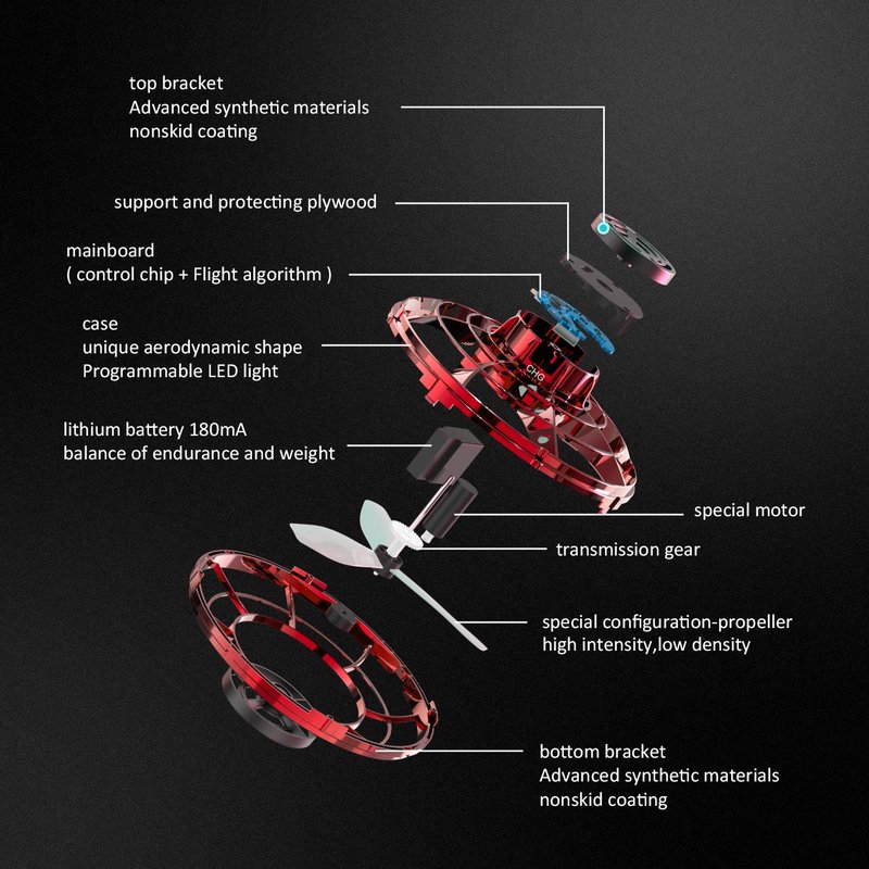 - 【Safe and Anti-drop】: This light up UFO drone toy made of high-quality non-toxic and soft ABS material, and the closed wheel design will effectively protect hands when spinning, keeps the drone safe from damages.It will stop automatically when it hit the furniture or any other stuffs.