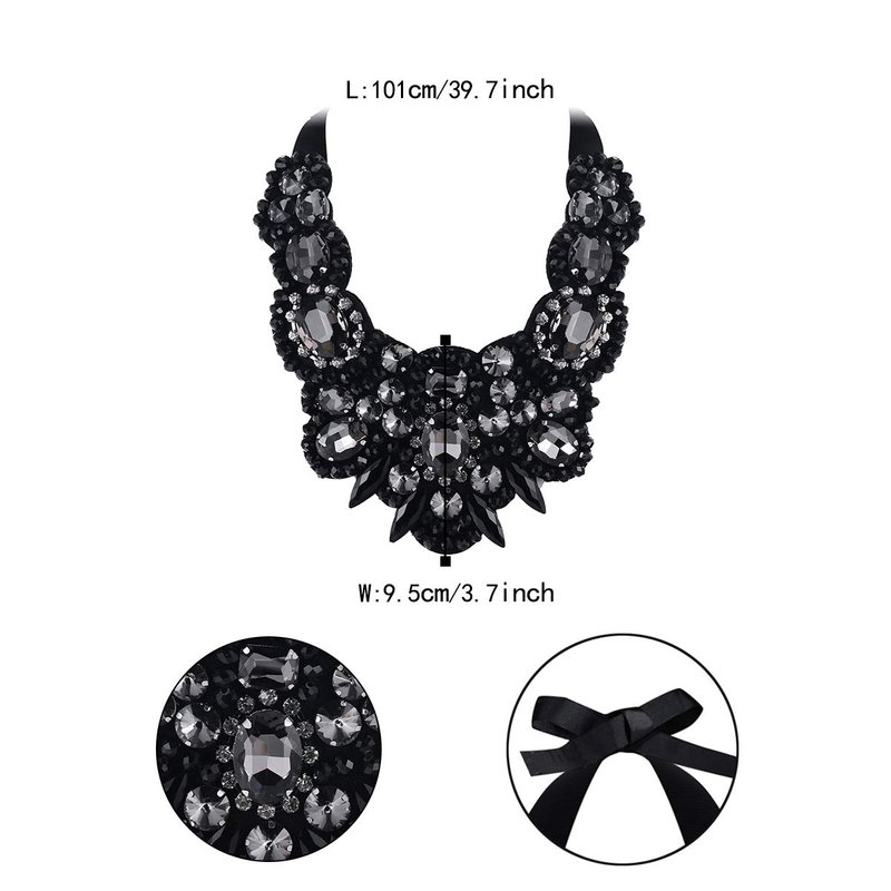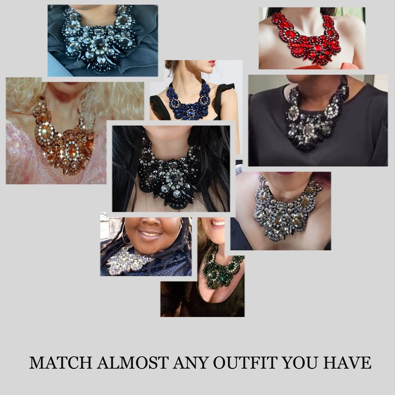 - ❤️【Nickel-Free】: This Statement Necklace made of Sparkle Rhinestone Crystal, with adjustable back ribbon and skin-friendly cotton material, Lead-free & Nickle-free, safety for sensitive skin.