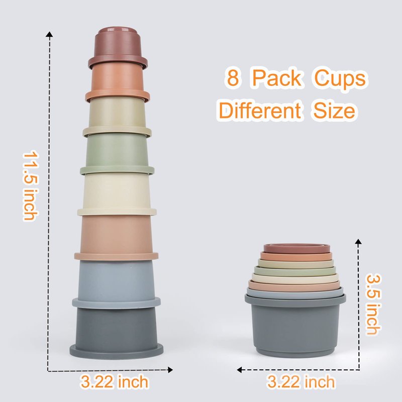 This set includes 8PCS nesting cups toy in 8 different colors and sizes,and there are prominent numbers at the bottom of each cup.