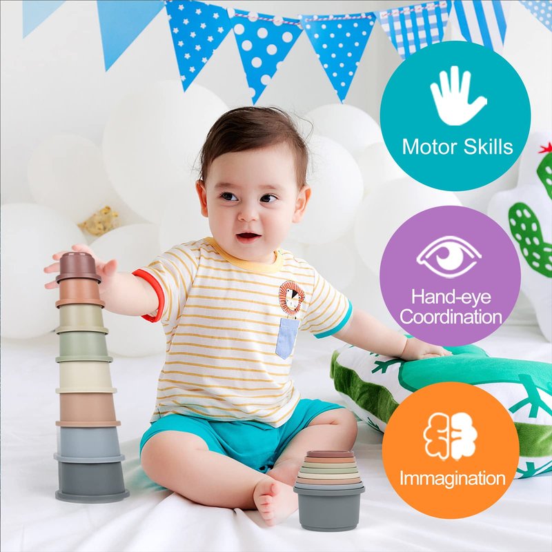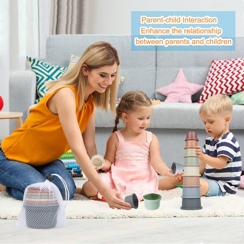 - Safe Material: The stacking cups toy is made of non-toxic, BPA-free ABS plastic, which meets American baby toy standards. No bad smell or any sharp edges and corners. The exterior is covered with high-quality feel paint. The smooth surface is safe enough to protect children's little hands.
