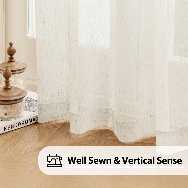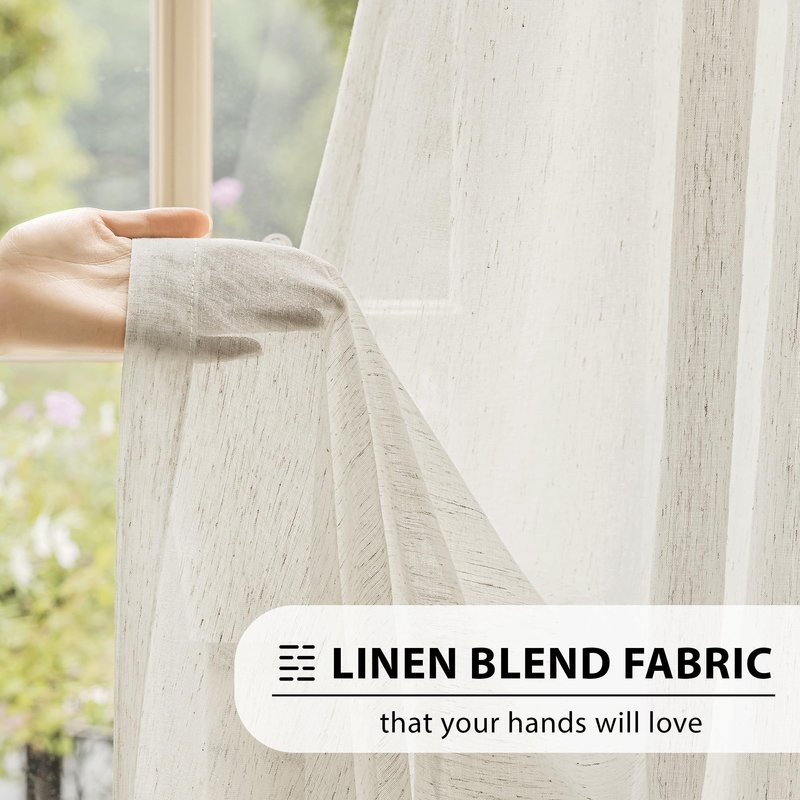 FMFUNCTEX Linen Sheer Curtains for Bedroom, Beige Curtains 84 inches Long for Living Room, Natural Flax Blend Window Draperies for Farmhouse, Rod Pocket 2 Panels