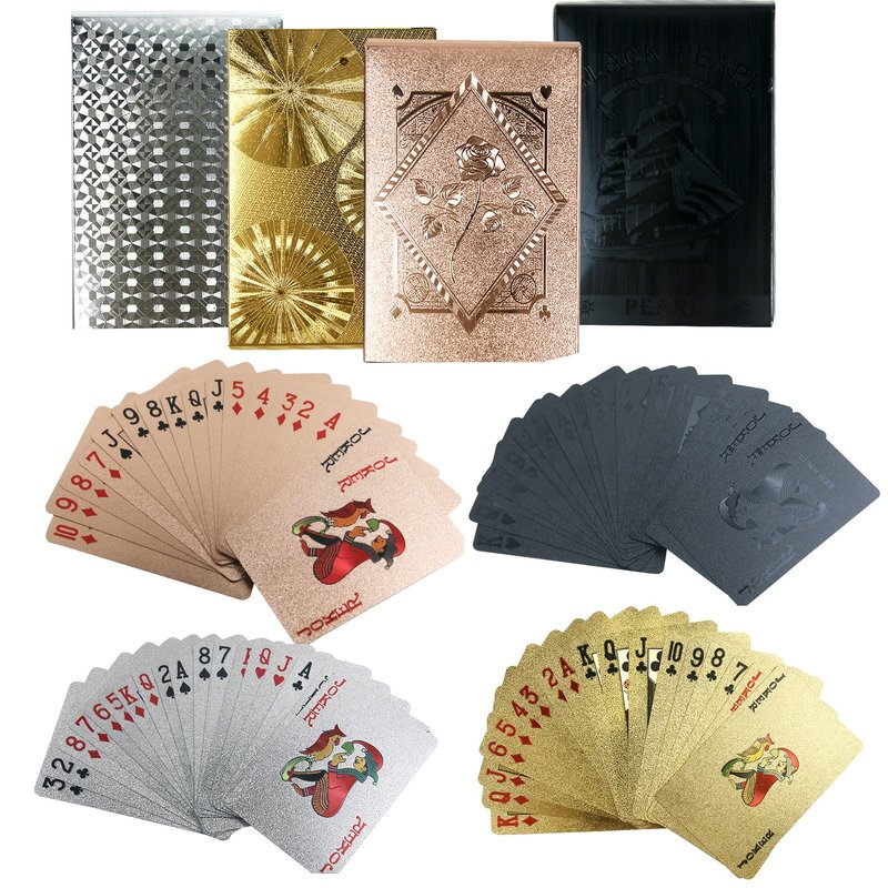 1. Value pack of 4 decks playing cards gift set, rose gold + gold + cool black +platinum waterproof playing card.