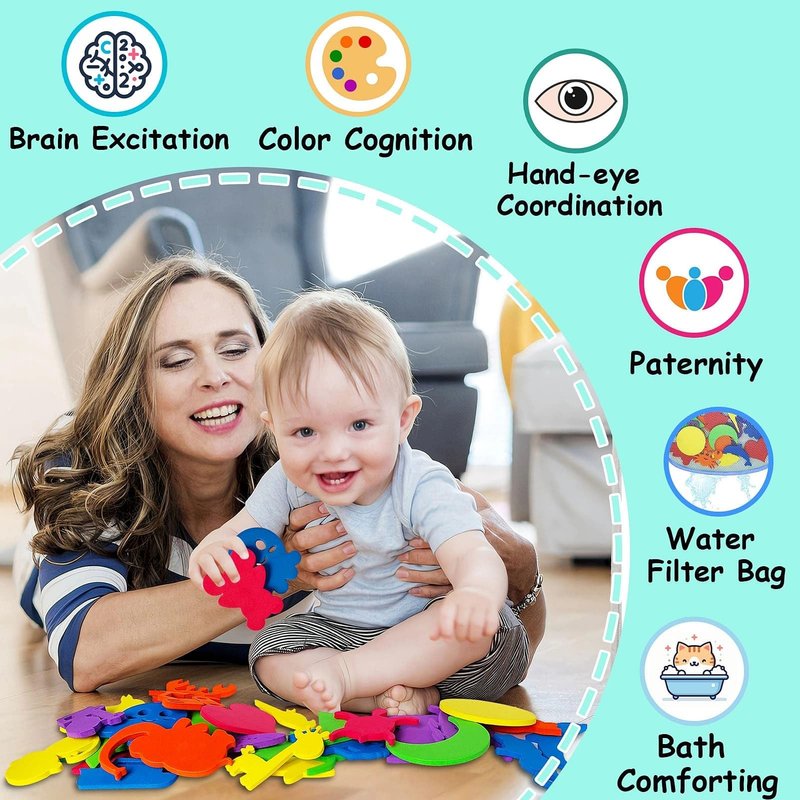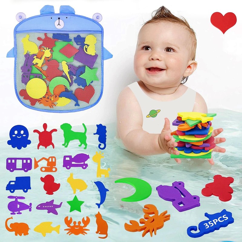 - COME WITH BATH TOY ORGANIZER BAG: YYMHMF foam bath toys for boys and girls come with a convenient storage bag, making cleanup of these tub toys a breeze. Helps these bath time toys dry thoroughly.
