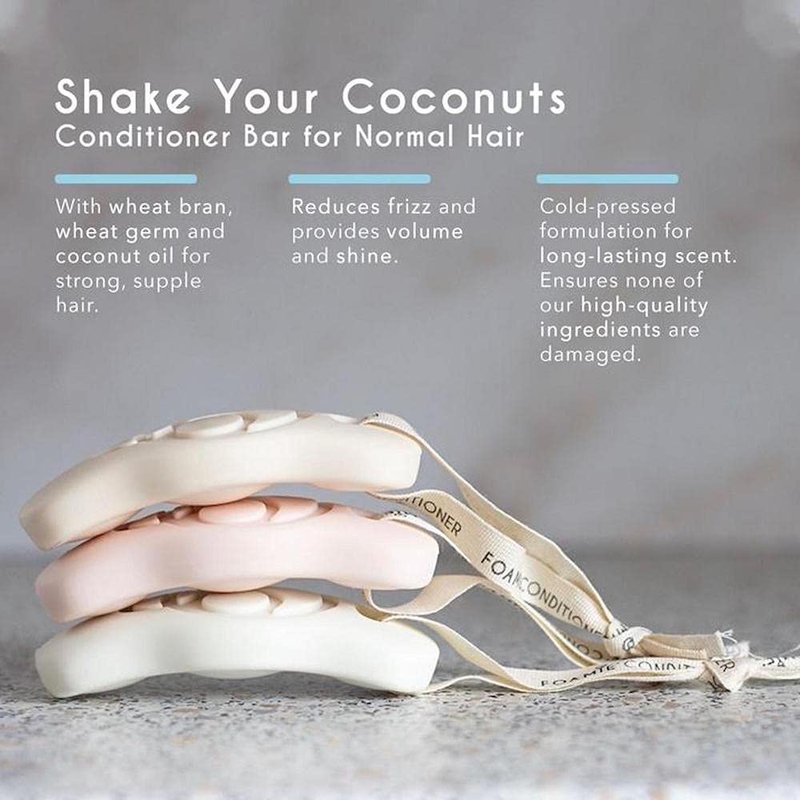 Foamie Solid coconut milk conditioner Shake Your Coconuts is suitable for normal hair and for curls and gives natural shine. With wheat bran, germ and coconut oil for supple & strong hair. 3 in 1 solid hair care: massages, cleanses and nourishes. Our solid hair care products are 100% plastic-free and have been dermatologically tested. Foamie solid care products are pH optimized and perfectly adapted to skin and hair. The solid care is not a soap, which is why our products are gentler on the skin compared to soaps. Our promise: 0% plastic. 0% PEG. 0% mineral oils. 0% silicones. 0% Lilial and 0% soap. By eliminating plastic, Foamie is more environmentally friendly than traditional liquid conditioners in plastic bottles. You'll save about 2 plastic bottles with each solid conditioner you use, saving a little bit for the environment. Together with the organization "The Ocean Cleanup" we collect plastic waste and you can help us now. For every Foamie sold, we keep the oceans a little bit cleaner. Application: Foam the bars between your palms with a little water - the curved, ergonomic shape makes it easy to apply. Distribute the product into the hair or the ends of the hair, leave on for two to three minutes and then rinse thoroughly. Finally, simply hang the bars on the integrated, environmentally friendly cotton cord to dry, ready!