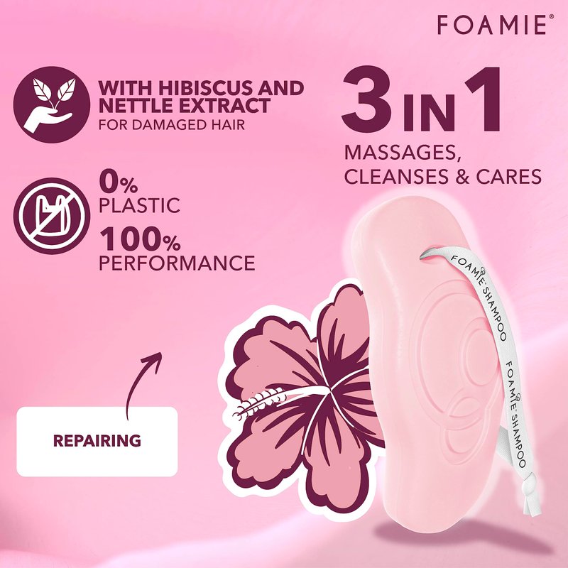 Foamie Natural Shampoo Bar Soap-Free, Paraben & Sulfate Free Solid Shampoo For Damaged Hair Hibiscus & Nettle Extract, Strengthens & Repair Frizzy Hair