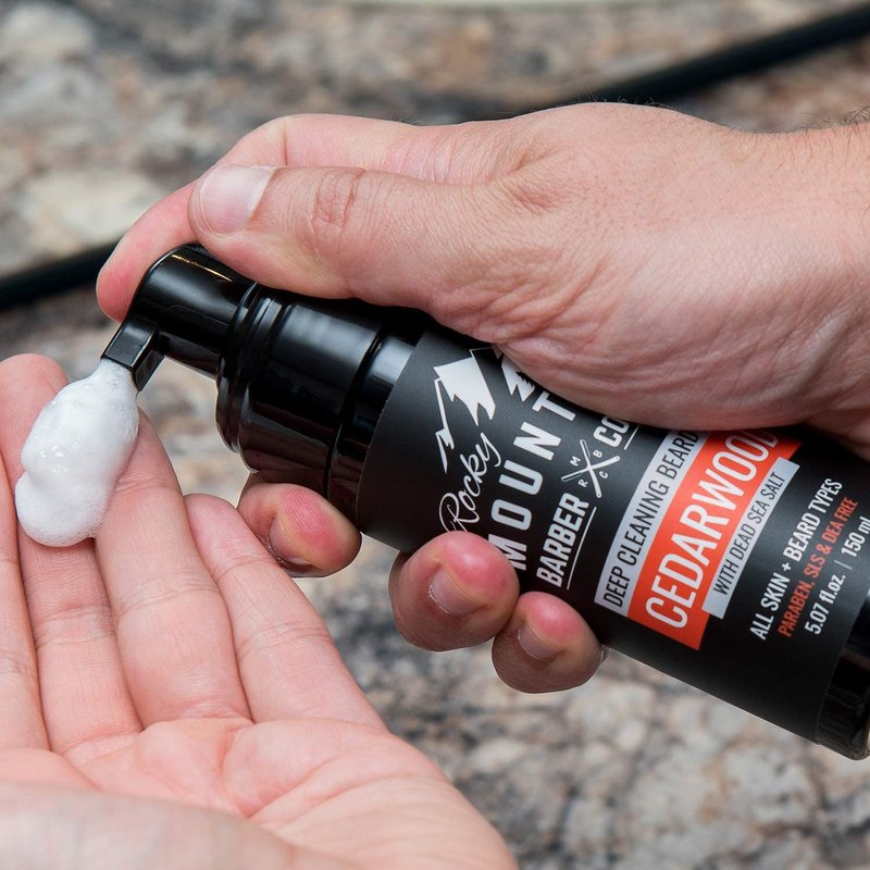 Foaming Cedarwood Beard Wash - With Cedarwood Essential Oil, Vitamin B5 & Dead Sea Salt – 5 oz by Rocky Mountain Barber Company