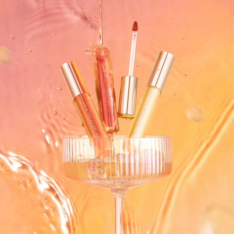 FOCALLURE Glasting Water lip Tint,Non-Sticky Long Lasting Liquid Lipstick,High Shine,Vivid 16 Colors,Glossy Finish Lipgloss for Daily Use
