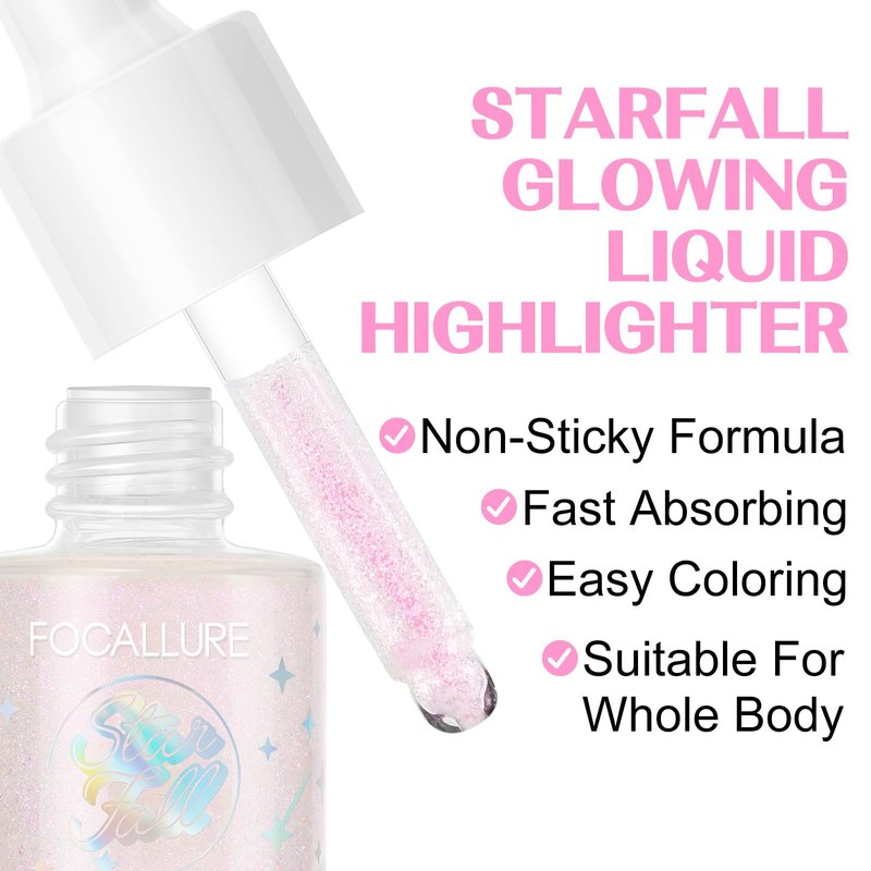 - GLOW YOUR FACE & BODY - FOCALLURE Starfall Glowing Liquid Body Oil gives your skin a warm, glowy, dewy look with just a few drops. Get ready to bathe your skin in a high-shine finish.