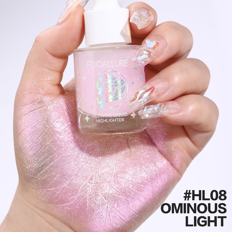 FOCALLURE Starfall Glowing Liquid Highlighter, Shimmering Body Oil, Non-Sticky Shimmer Liquid Luminizer, Non-Greasy, Face & Body Glitter Makeup for Costumes, Cosplay, Rave Festival, OMINOUS LIGHT