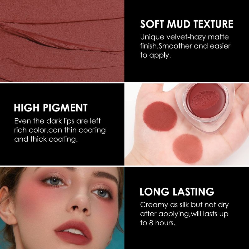 - 【Velvet-hazy matte finish】The brand new hazy velvet-matte lip mud, makes your lips & cheeks feel silky beyond imagination. Its touch on the surface is as bouncy as pudding, but the touch becomes smooth like cream after pressing. After evenly applying on the lips, it presents an advanced hazy velvet matte finish.