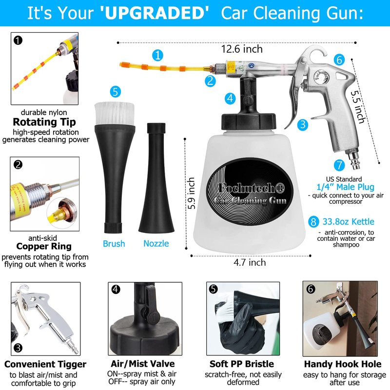 Fochutech Car Cleaning Kit, Car Detailing Kit Cleaning Gun Works with Air Compressor, Pro Auto Detailing Supplies Automotive Interior Deep Clean Stain Remover for Upholstery Carpet Seat Headliner