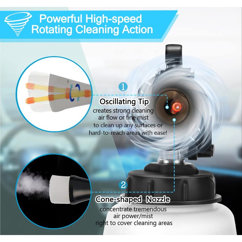- ♦ 【Pro Car Detailing Kit, Easy to Use】A must have tool in your car car cleaning supplies listing, whatever for car detailer or do-it-yourself enthusiasts. Working with your air compressor to jet stable airflow or mist, and then dirt and grime are immediately released from fabrics, carpet and solid surfaces. Save your time and money!