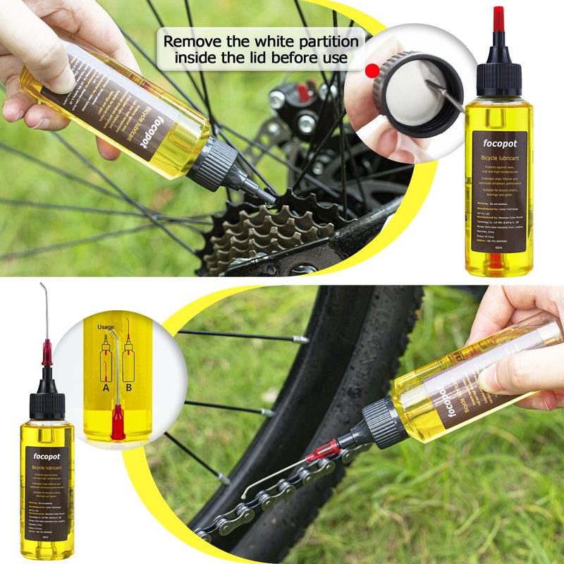 - [Suitable for all bikes]:focopot Bike chain oil lubricant and cleaner set is perfect for cleaning all kinds of bikes like mountain,mt,road,bmx etc. if you have any questions, please feel free to contact us.