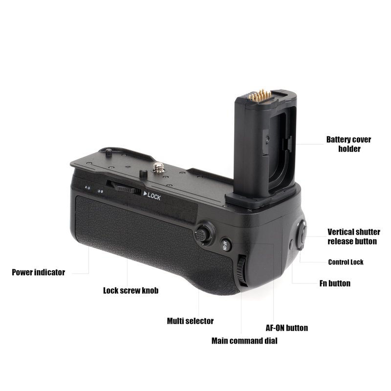 - Features a variety of operating controls such as shutter release button, main and sub-command dials, multi selector, AF-ON button and Fn button button for improved operation when taking photographs in portrait (tall) orientation.
