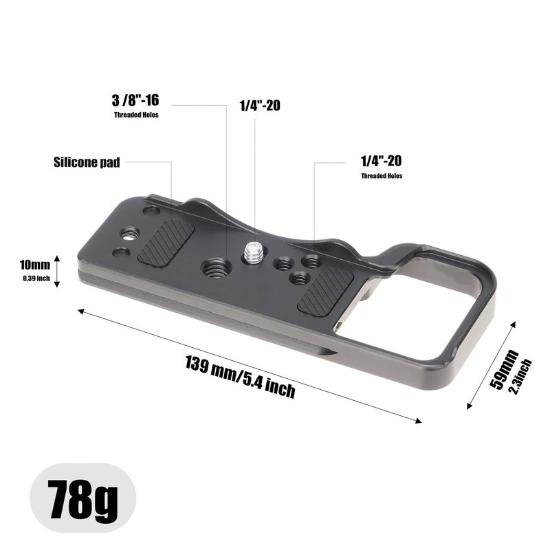 - The baseplate has extra four 1/4"-20 & one 3/8"-16 threaded mounting holes for attaching camera to tripod or stabilizer; On the back side of the baseplate, it is equipped with magnet to store the L wrench and won't lost.