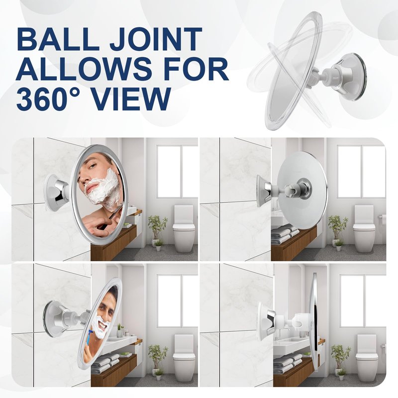 - 360° swivelling: The shower mirror has a 360° swivelling function, which allows you to adjust the angle of the mirror to suit your needs. This feature is particularly useful for shaving, make-up, and other grooming tasks.