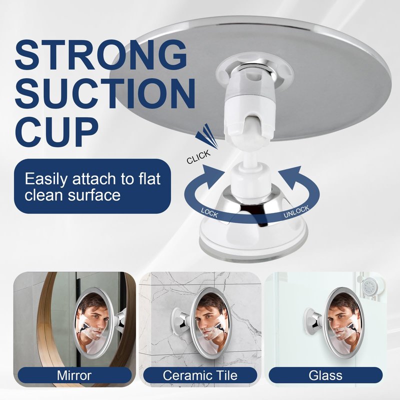 - Suction cups and hooks: The mirror comes with strong suction cups and adhesive hooks, which can be firmly attached to any smooth surface, such as glass, tile, or metal. This ensures that the mirror stays in place and does not move or fall off during use.