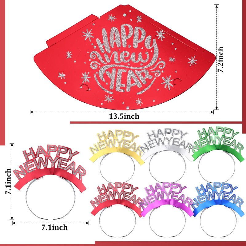 Features: User friendly and easy to assemble: Every item in our new year's party accessories is easy to assemble with little DIY required, you can quickly get them ready in no time. The user-friendly design allows you to focus more on celebration and less on preparation. Multiple occasions: Beyond the New Year's Eve party, our set of New Year's Eve party supplies 2025 can cater to various festive occasions like birthday parties, anniversaries, bachelorette, or themed parties. The versatility of these items will bring additional joy and excitement to any celebration. Specifications: Color: red, green, gold, blue, purple, silver Size: as pictures shown Package includes: 24 x Cone hats 24 x Glitter tiaras 24 x Beaded necklace 24 x Tassel squawkers 24 x Curled squawkers Notes: Manual measurement, please allow slight errors on size. The color may exist a slight difference due to different screen displays.