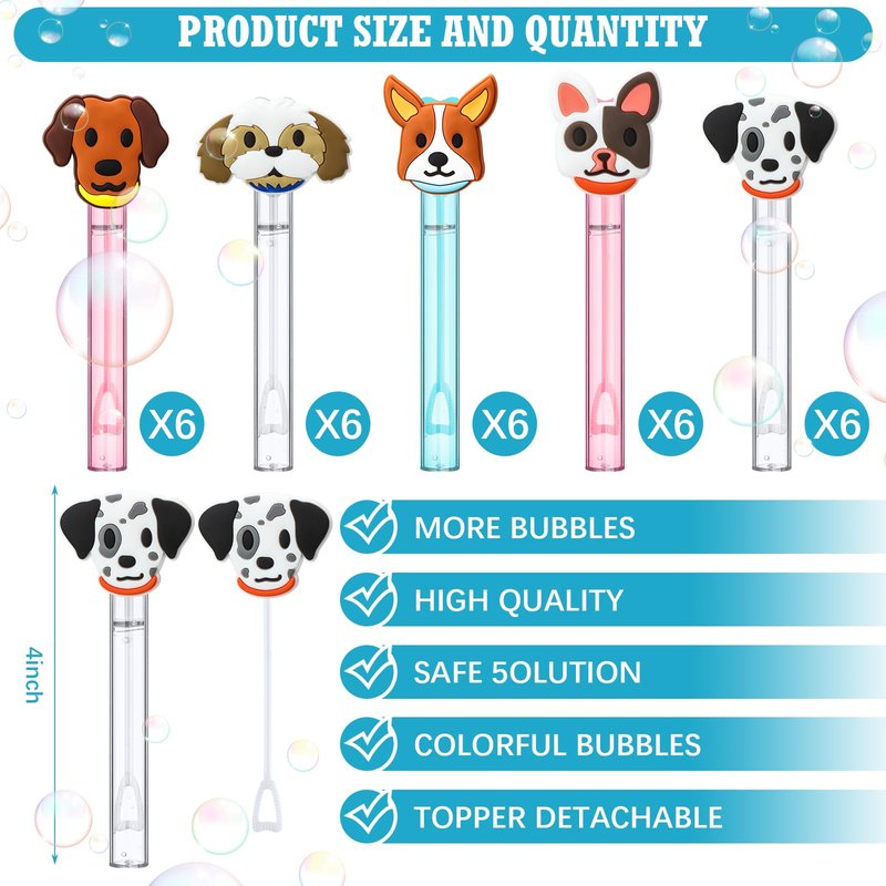 - Diversity in Packaging: enjoy a package of 30 dog themed mini bubble tubes, featuring 5 different styles that add excitement and diversity to your celebrations; Whether as a family activity or a competitive game at parties, this set can bring out the fun and excitement in every occasion