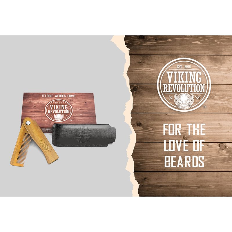 Folding Beard Comb w/Carrying Pouch for Men - All Natural Wooden Beard Comb w/Gift Box - Green Sandalwood Comb for Grooming & Combing Hair, Beards and Mustaches by Viking Revolution