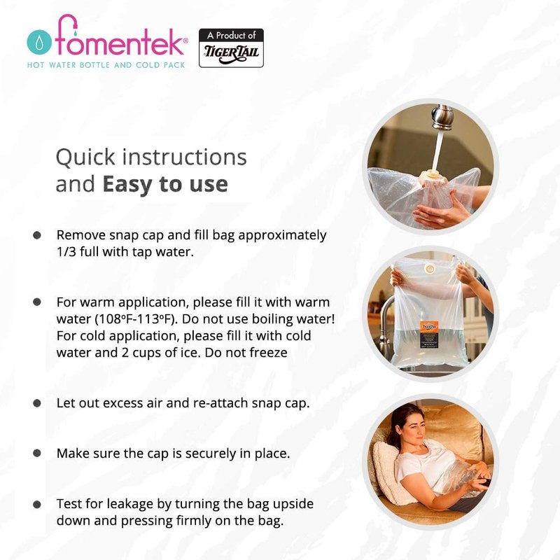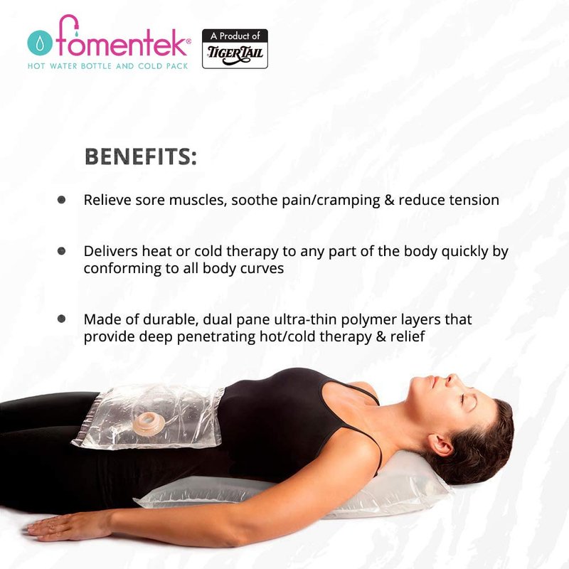 - FEEL YOUR BEST: The Fomentek Hot and Cold Water Bag is the way to soothe sore muscles, find pain relief, and reduce cramping and tension for the whole body. Release tension from your back, shoulders, neck, glutes, hips, feet, calves, arms, stomach, and legs with a hot water bottle designed to last longer and perform better!