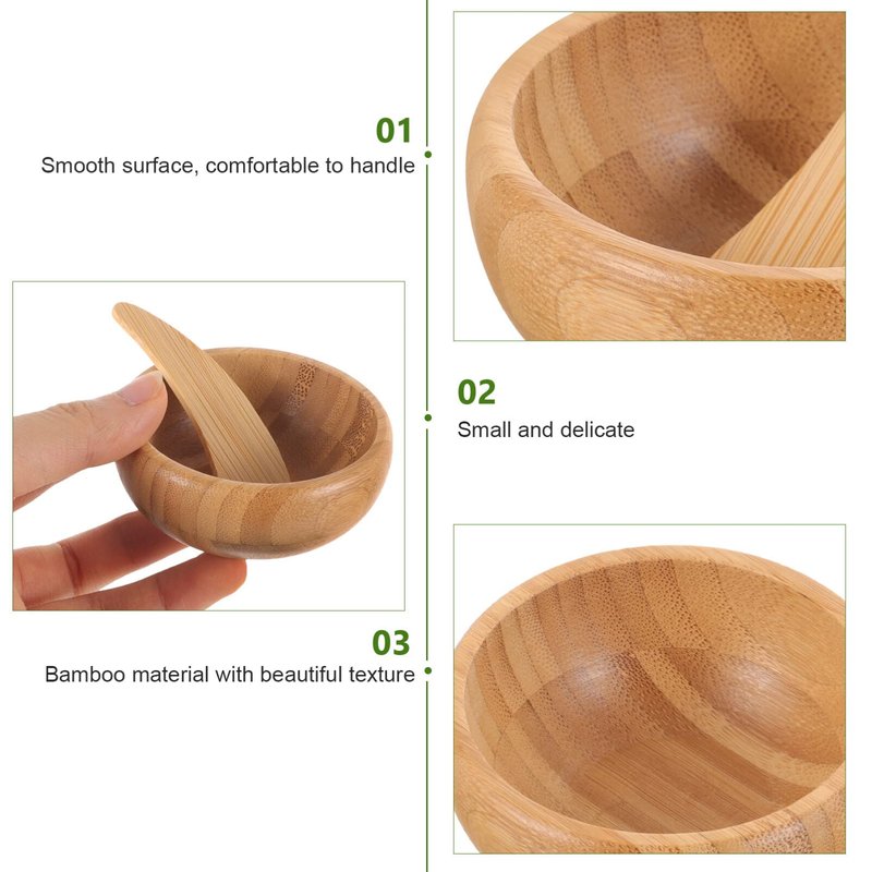 This is a DIY mixing bowl for masks. This mask mixing bowl and tool set is made of bamboo materials, which ensure great durability and a service life. This mask mixing bowl and tool set is a great DIY mask tool with a gentle texture and moderate volume that is convenient to use for DIY mask work and is also simple to clean.