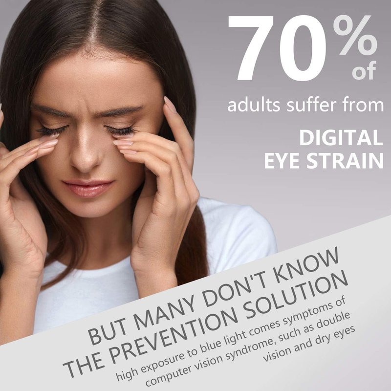 The computers, laptops and mobile phone will produce harmful blue light, use computer and phone long time will cause eyes losing focus, vision getting unclear, fatigue, headache, etc. The blue light blocking glasses can help you solve these problems, provide all-day protection for your eyes.