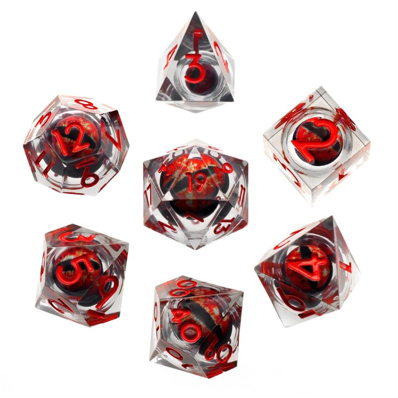 FONVGOGO Liquid Core DND Dice, Dragon Eye Dice Set D&D Sharp Edge Resin Dungeons and Dragons Dice Polyhedral Beholder's Ttrpg Die Role Playing RPG D and D Dice (Red)
