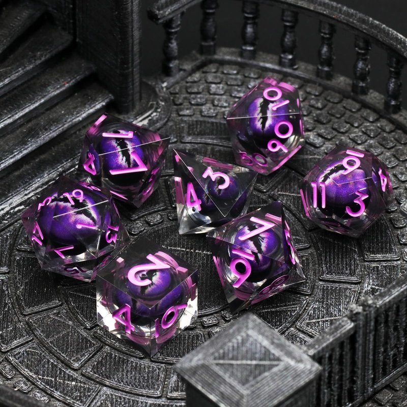 - DRAGON EYE DICE: A lifelike dragon eye inside the dice, floating in a liquid, always looks strait up no matter how the dice roll. With the cool and unique design, they are an absolute showstopper on any gaming table